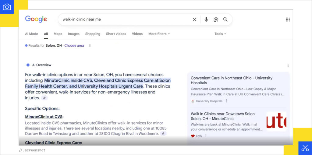 That’s how a 33-year-old from Idaho would search for an urgent care clinic in his area. He didn’t consider using AI Mode for this particular query.