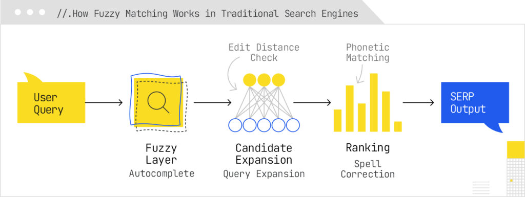 Together, these patterns show how traditional search uses fuzzy matching to repair, expand, and contextualize queries – improving robustness, discoverability, and ultimately the user’s path to the right result.