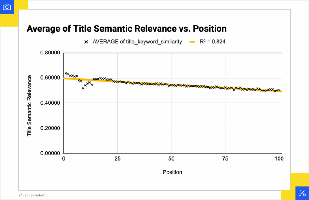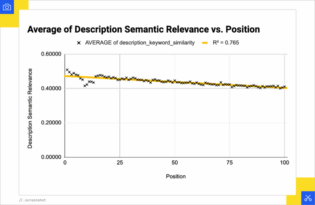 - Measured cosine similarity between the target keyword and the top semantic chunk of each transcript relative to its YouTube ranking position.